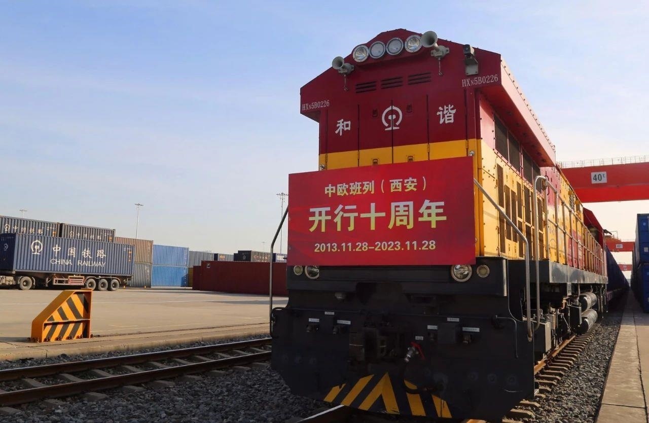△2023年11月28日,X8155次中歐班列從西安國(guó)際港站緩緩駛出,開往德國(guó)漢堡。