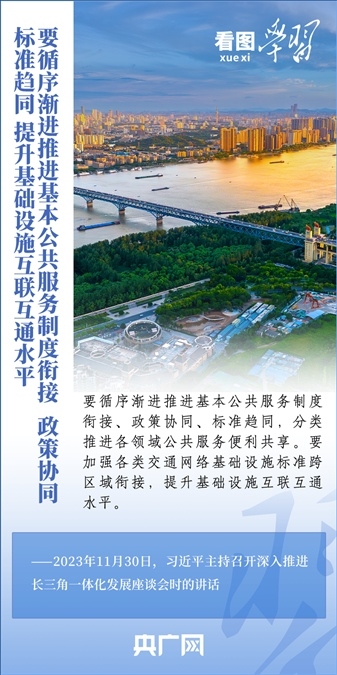11月30日,習(xí)近平總書(shū)記在上海主持召開(kāi)深入推進(jìn)長(zhǎng)三角一體化發(fā)展座談會(huì)并發(fā)表重要講話。總書(shū)記強(qiáng)調(diào),要完整、準(zhǔn)確、全面貫徹新發(fā)展理念,緊扣一體化和高質(zhì)量這兩個(gè)關(guān)鍵詞,樹(shù)立全球視野和戰(zhàn)略思維,堅(jiān)定不移深化改革、擴(kuò)大高水平開(kāi)放,統(tǒng)籌科技創(chuàng)新和產(chǎn)業(yè)創(chuàng)新,統(tǒng)籌龍頭帶動(dòng)和各揚(yáng)所長(zhǎng),統(tǒng)籌硬件聯(lián)通和機(jī)制協(xié)同,統(tǒng)籌生態(tài)環(huán)保和經(jīng)濟(jì)發(fā)展,在推進(jìn)共同富裕上先行示范,在建設(shè)中華民族現(xiàn)代文明上積極探索,推動(dòng)長(zhǎng)三角一體化發(fā)展取得新的重大突破,在中國(guó)式現(xiàn)代化中走在前列,更好發(fā)揮先行探路、引領(lǐng)示范、輻射帶動(dòng)作用。一起來(lái)學(xué)習(xí)!