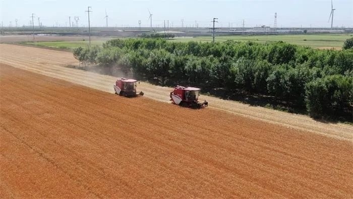 △6月9日,滄州渤海新區(qū)黃驊市仙莊片區(qū)旱堿麥開鐮。
