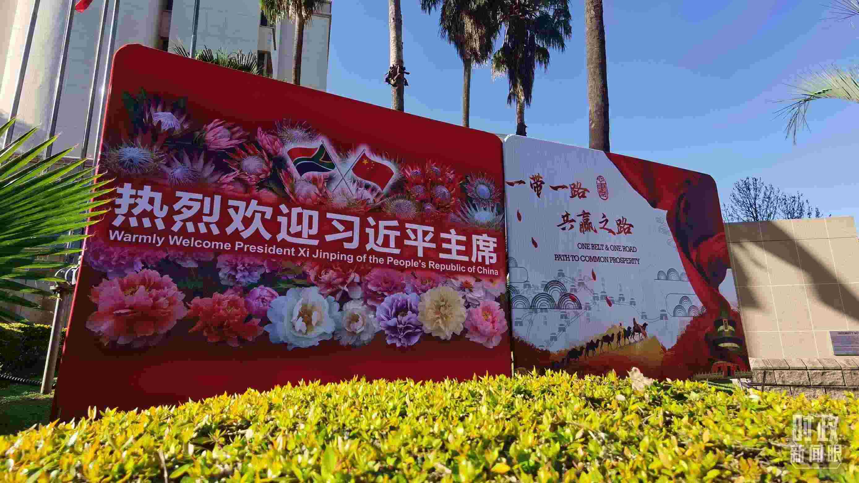 △ 2023年8月,習近平主席抵達南非約翰內(nèi)斯堡,出席金磚國家領導人第十五次會晤并對南非進行國事訪問。圖為約翰內(nèi)斯堡街道邊“熱烈歡迎習近平主席”的標語牌。(總臺央視記者曹亞星拍攝)