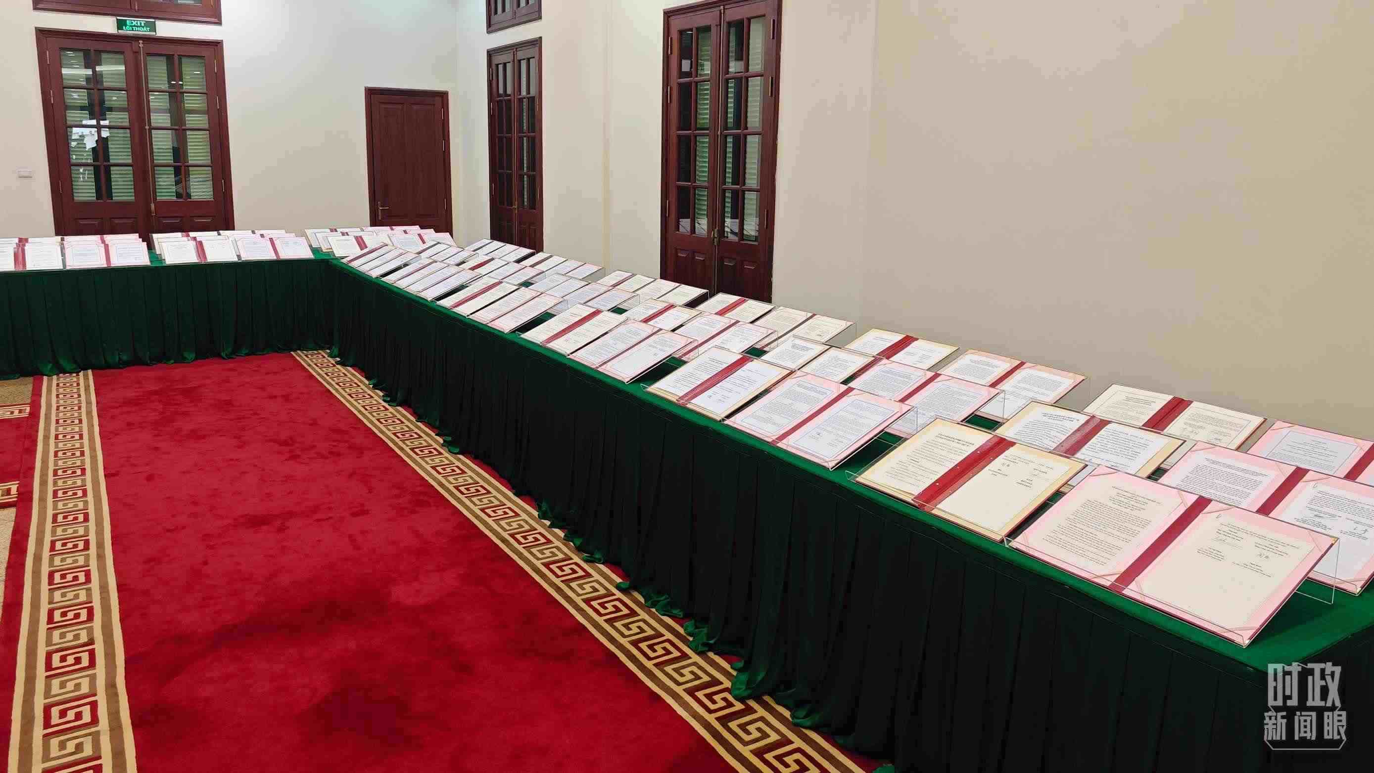 △ 2023年12月,習近平主席抵達越南河內(nèi),開啟年內(nèi)的第四次出訪。圖為中越雙方簽署的雙邊合作文件展示,涵蓋共建“一帶一路”等30多個領域。(總臺央視記者耿小龍拍攝)