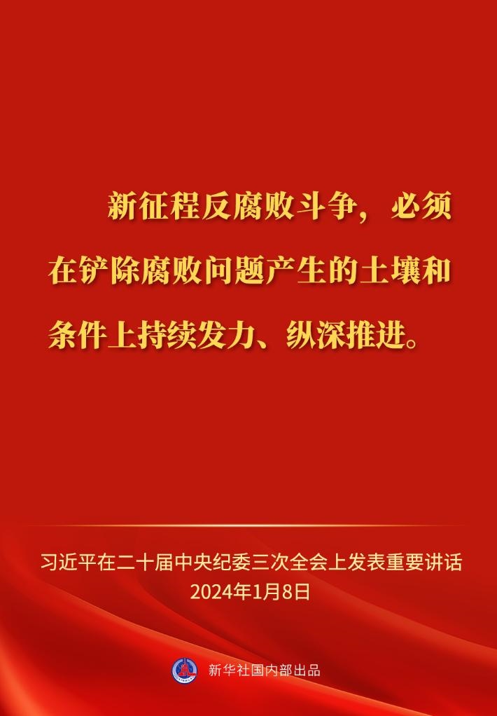 ??中共中央總書記、國家主席、中央軍委主席習近平8日上午在中國共產(chǎn)黨第二十屆中央紀律檢查委員會第三次全體會議上發(fā)表重要講話,一起來看金句?! ?/p>
