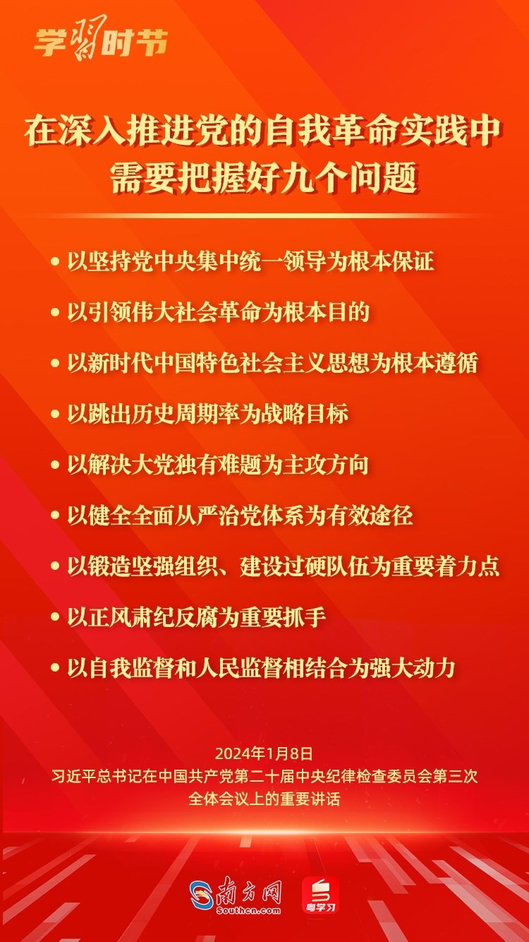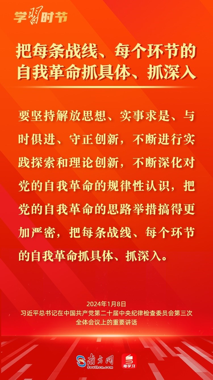 1月8日,中共中央總書(shū)記、國(guó)家主席、中央軍委主席習(xí)近平在中國(guó)共產(chǎn)黨第二十屆中央紀(jì)律檢查委員會(huì)第三次全體會(huì)議上發(fā)表重要講話,深刻闡述黨的自我革命的重要思想,對(duì)持續(xù)發(fā)力、縱深推進(jìn)反腐敗斗爭(zhēng)作出戰(zhàn)略部署。