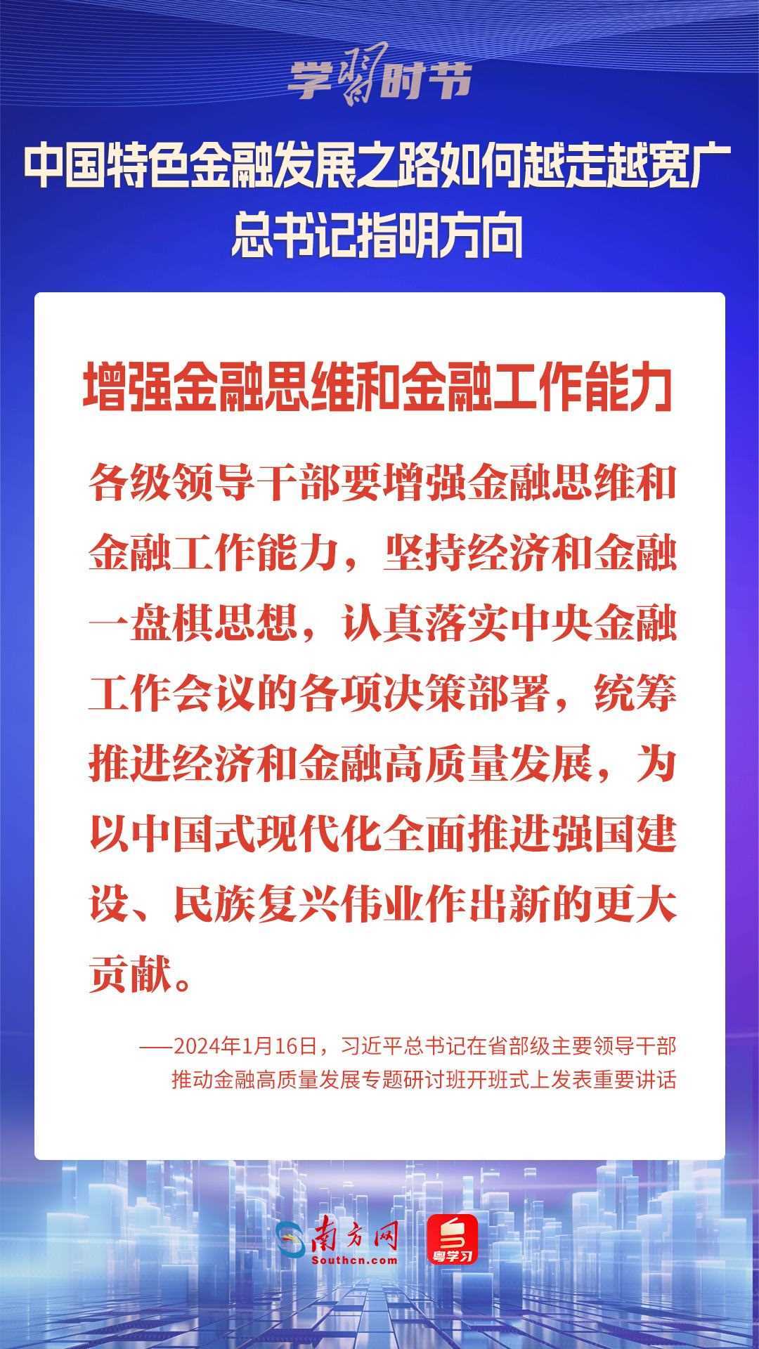 1月16日,中共中央總書記、國家主席、中央軍委主席習近平在省部級主要領導干部推動金融高質(zhì)量發(fā)展專題研討班開班式上發(fā)表重要講話,為中國特色金融發(fā)展之路指明方向。