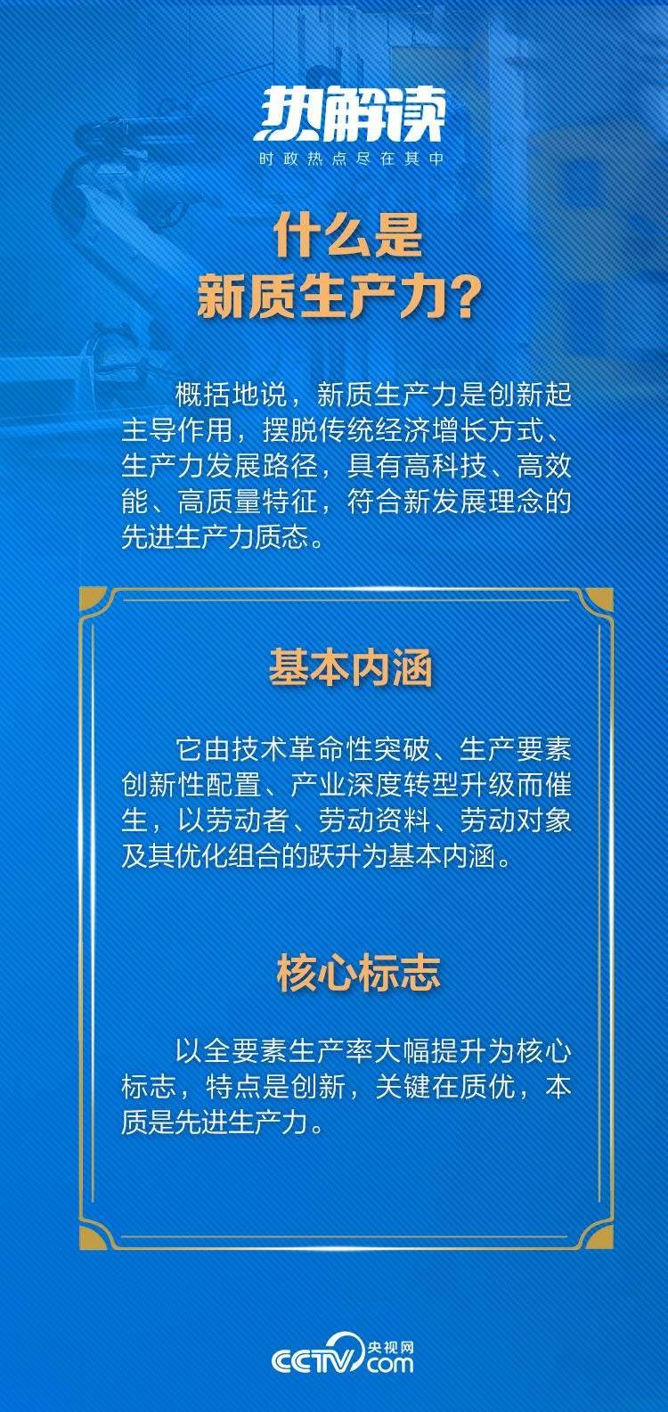 在這次集體學(xué)習(xí)中,習(xí)近平總書記首次全面系統(tǒng)闡釋了新質(zhì)生產(chǎn)力的重要概念和基本內(nèi)涵,并就如何推動(dòng)新質(zhì)生產(chǎn)力加快發(fā)展提出明確指引,要求“必須繼續(xù)做好創(chuàng)新這篇大文章”。