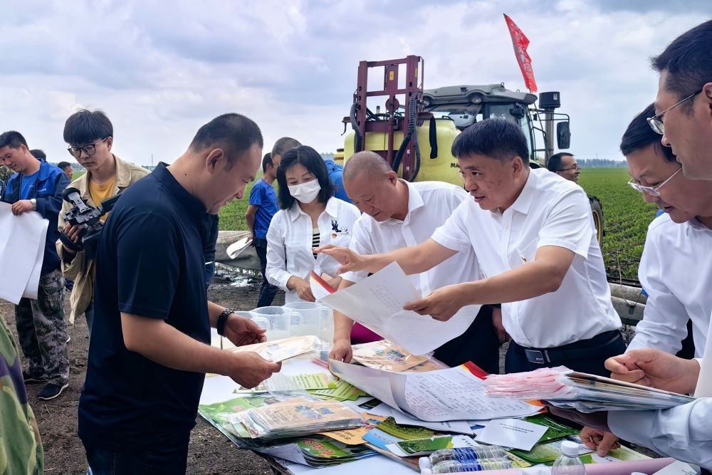 黑龍江省農(nóng)業(yè)農(nóng)村廳種植業(yè)管理處工作人員在哈爾濱市雙城區(qū)地頭,向農(nóng)民發(fā)放科學用農(nóng)藥資料(2023年6月11日攝)。學習貫徹習近平新時代中國特色社會主義思想主題教育工作會議召開以來,黑龍江省農(nóng)業(yè)農(nóng)村廳種植業(yè)管理處將理論學習與實際工作相結合,深入“田間地頭”調查研究、深入推進“千萬噸糧食增產(chǎn)計劃”,助力黑龍江省當好維護國家糧食安全“壓艙石”,將主題教育成果融入到維護國家糧食安全的具體實踐中。新華社發(fā)