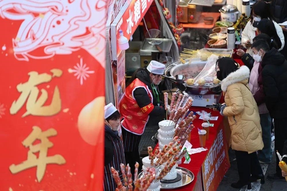有拉洋片、雜技相聲等傳統(tǒng)技藝展示,也有賣炸灌腸、糖葫蘆的小攤位……今年春節(jié)期間,北京全面恢復傳統(tǒng)廟會,激活了許多老北京的獨特春節(jié)記憶。