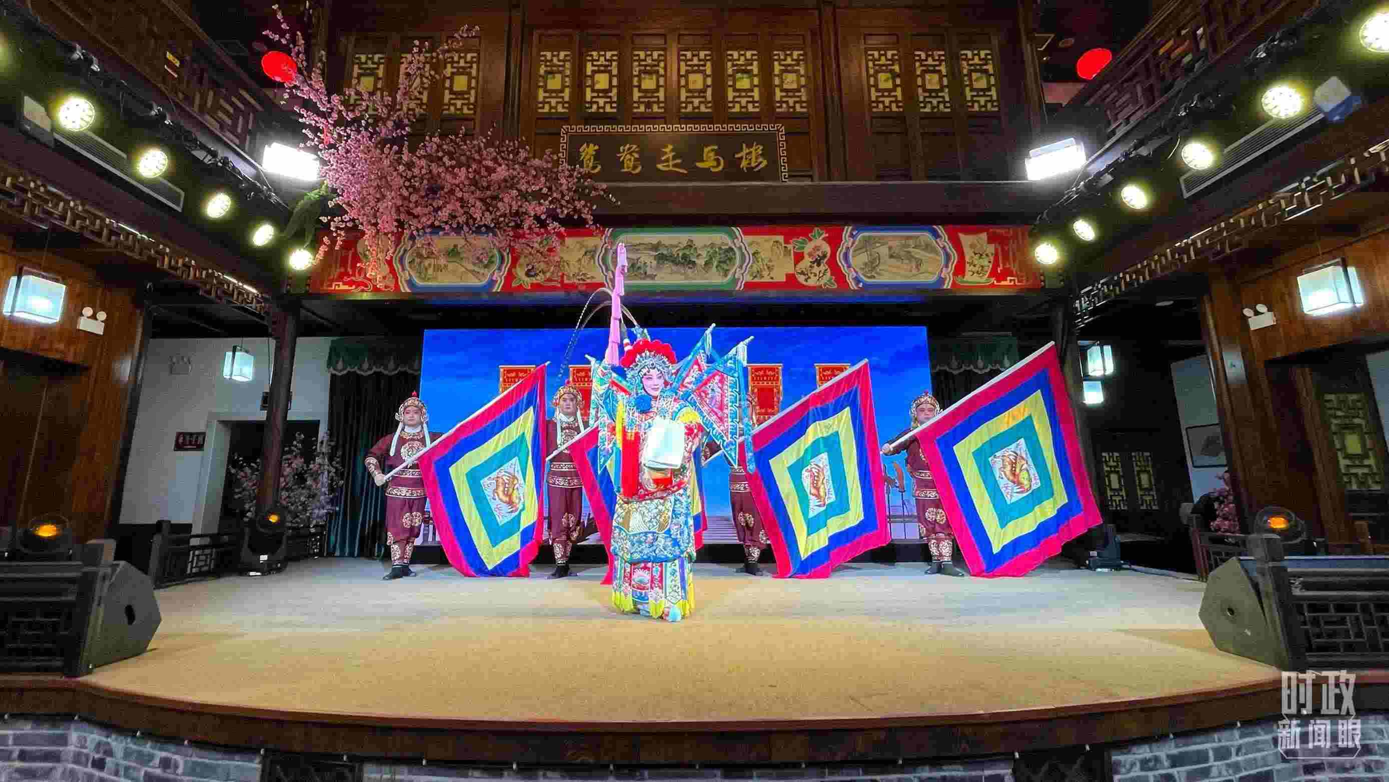 △常德河街,鴛鴦走馬樓上演常德高腔《穆桂英掛帥》和澧水船工號(hào)子。(總臺(tái)央視記者許永松、國廣記者李晉拍攝)