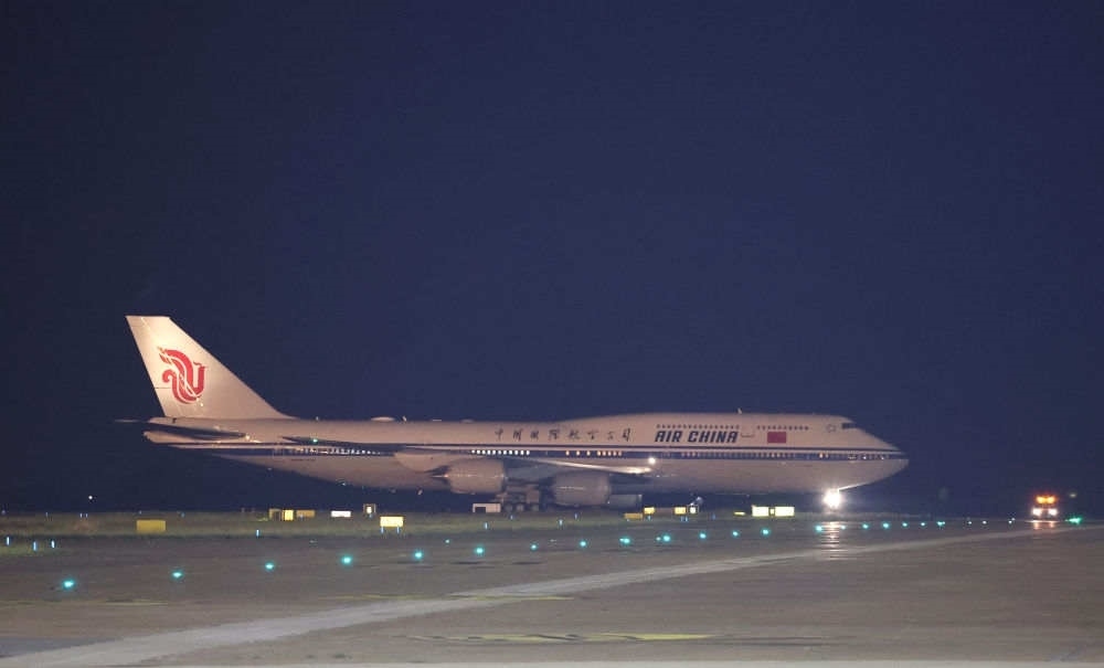習近平主席夫人彭麗媛,中共中央政治局常委、中央辦公廳主任蔡奇,中共中央政治局委員、外交部部長王毅等陪同人員同機抵達。