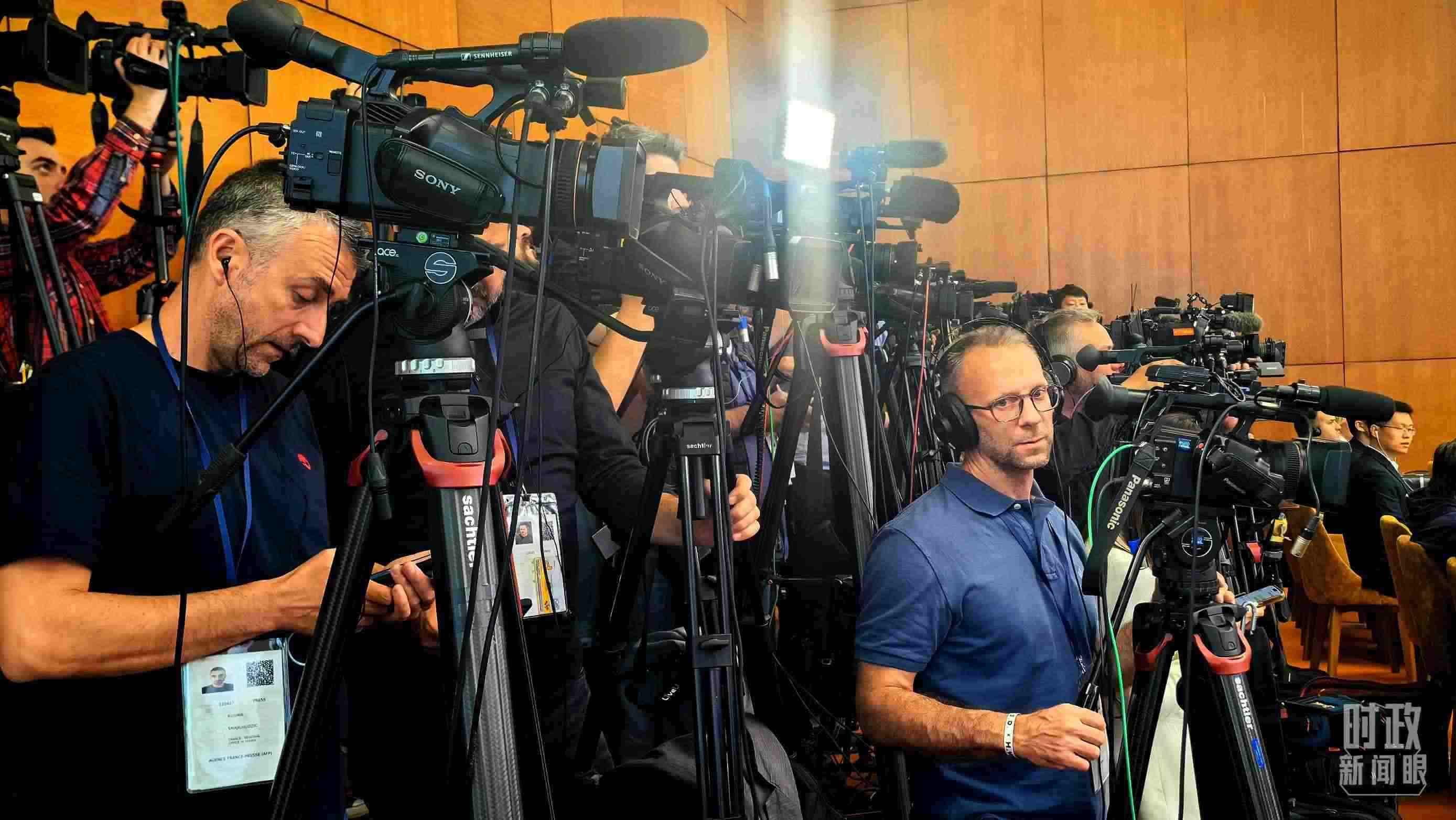 △習主席同武契奇總統(tǒng)會談后共同會見記者,會見現(xiàn)場記者云集。(總臺央視記者荊偉拍攝)