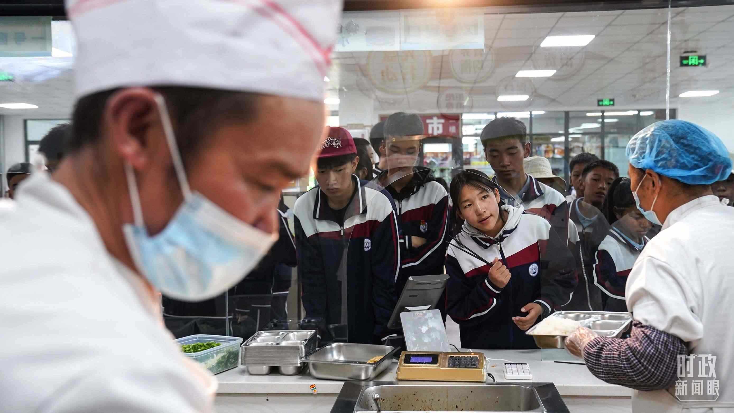 △果洛西寧民族中學(xué)食堂。(總臺(tái)國(guó)廣記者李晉、央視記者陸泓宇拍攝)