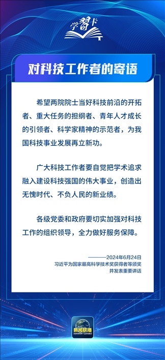 6月24日,中共中央總書(shū)記、國(guó)家主席、中央軍委主席習(xí)近平為國(guó)家最高科學(xué)技術(shù)獎(jiǎng)獲得者等頒獎(jiǎng)并發(fā)表重要講話。