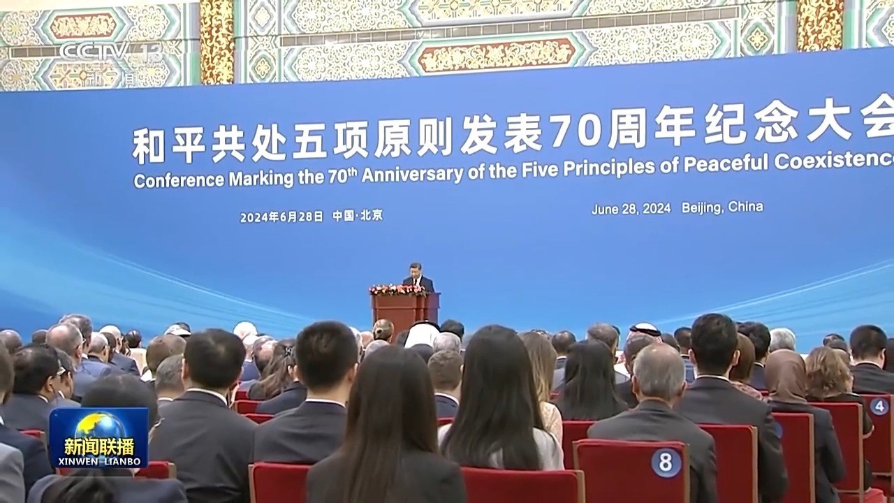 6月28日,國(guó)家主席習(xí)近平出席和平共處五項(xiàng)原則發(fā)表70周年紀(jì)念大會(huì),并發(fā)表題為《弘揚(yáng)和平共處五項(xiàng)原則,攜手構(gòu)建人類(lèi)命運(yùn)共同體》的重要講話。習(xí)近平主席在講話中全面闡釋和平共處五項(xiàng)原則的精神內(nèi)涵和時(shí)代價(jià)值,在世界百年未有之大變局中指明構(gòu)建人類(lèi)命運(yùn)共同體的前進(jìn)方向,發(fā)出“全球南方”同世界各國(guó)人民共創(chuàng)美好未來(lái)的時(shí)代強(qiáng)音。與會(huì)國(guó)內(nèi)外人士表示,習(xí)近平主席的重要講話飽含著對(duì)歷史的深邃思考、對(duì)現(xiàn)實(shí)的深刻分析、對(duì)未來(lái)的長(zhǎng)遠(yuǎn)謀劃,必將對(duì)推動(dòng)各國(guó)同心協(xié)力建設(shè)更加美好世界產(chǎn)生重大而深遠(yuǎn)的影響。