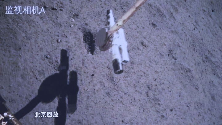 2024年6月4日7時(shí)38分,嫦娥六號(hào)上升器攜帶月球樣品自月球背面起飛,隨后成功進(jìn)入預(yù)定環(huán)月軌道。嫦娥六號(hào)完成世界首次月球背面采樣和起飛。這是當(dāng)日在北京航天飛行控制中心屏幕上拍攝的嫦娥六號(hào)取樣回放畫(huà)面。新華社記者 金立旺 攝