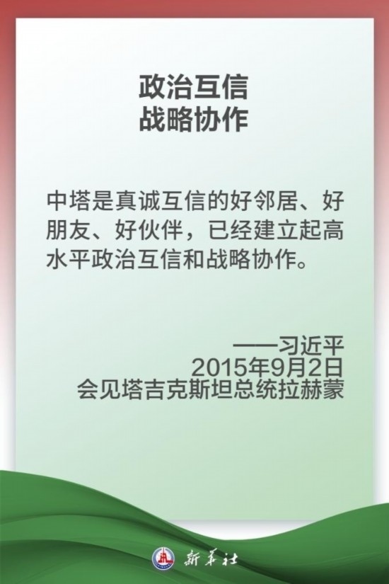 中國(guó)和塔吉克斯坦山水相連,兩國(guó)人民友好交往源遠(yuǎn)流長(zhǎng)。中塔建交30年多來(lái),兩國(guó)關(guān)系取得跨越式發(fā)展,達(dá)到全面戰(zhàn)略伙伴關(guān)系的歷史性高度。塔方最早同中方簽署共建“一帶一路”合作倡議,雙方率先建立發(fā)展共同體和安全共同體。