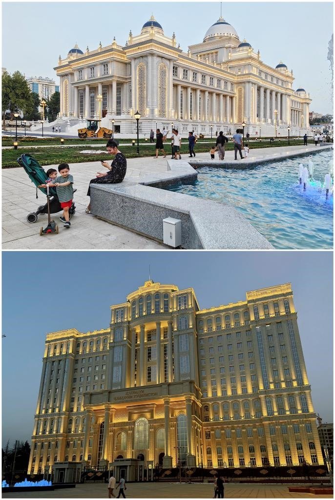 塔議會大樓、政府大樓坐落于杜尚別著名的魯達基大道,相隔數(shù)百米。議會大樓同總統(tǒng)府相望,政府大樓則俯瞰杜尚別另一條交通干道——索莫尼大道。兩座大樓融合歐亞古典柱廊結(jié)構(gòu)、塔吉克民族特色雕刻、伊斯蘭文化風格的設(shè)計,外觀大氣、典雅莊重,同魯達基大道兩側(cè)的古樹、鮮花、噴泉相映成景。