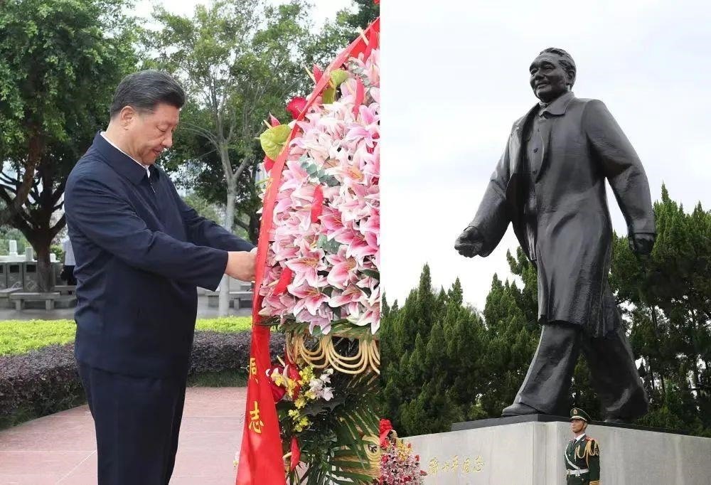 △2020年10月14日,深圳經(jīng)濟(jì)特區(qū)建立40周年慶祝大會(huì)在廣東深圳市隆重舉行,習(xí)近平總書(shū)記在會(huì)上發(fā)表重要講話。這是當(dāng)天下午,總書(shū)記來(lái)到蓮花山公園,向鄧小平同志銅像敬獻(xiàn)花籃。