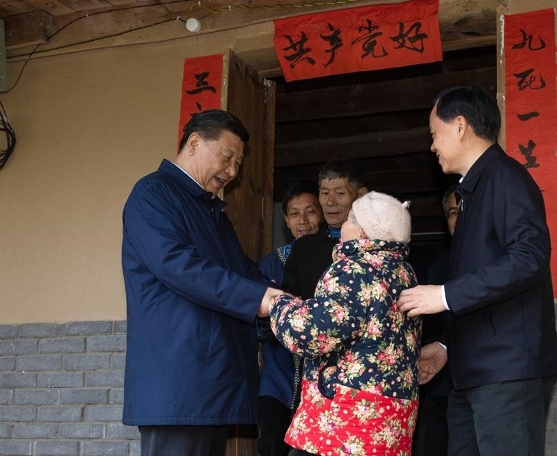 △2019年4月15日,習(xí)近平總書(shū)記在重慶石柱土家族自治縣中益鄉(xiāng)華溪村看望貧困戶譚登周一家。
