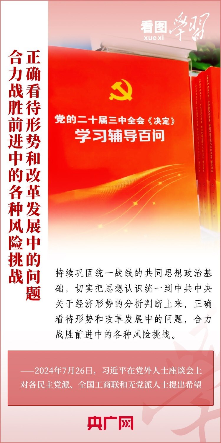 中共中央7月26日在中南海召開(kāi)黨外人士座談會(huì),就當(dāng)前經(jīng)濟(jì)形勢(shì)和下半年經(jīng)濟(jì)工作聽(tīng)取各民主黨派中央、全國(guó)工商聯(lián)負(fù)責(zé)人和無(wú)黨派人士代表的意見(jiàn)和建議。習(xí)近平總書(shū)記主持座談會(huì)并發(fā)表重要講話(huà),對(duì)做好下半年經(jīng)濟(jì)工作作出重要部署,并對(duì)黨外人士提出3點(diǎn)希望。一起來(lái)學(xué)習(xí)!