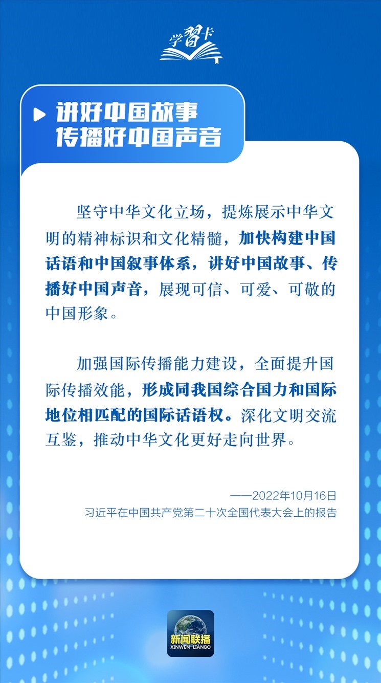 習(xí)近平總書記高度重視國際傳播能力建設(shè),指出當(dāng)前外宣工作處于歷史最好時(shí)期,同時(shí)也面臨最大壓力,強(qiáng)調(diào)要全面加強(qiáng)和改進(jìn)國際傳播工作,深化文明交流互鑒,形成同我國綜合國力和國際地位相匹配的國際話語權(quán),增強(qiáng)中華文明傳播力影響力。一起學(xué)習(xí)↓