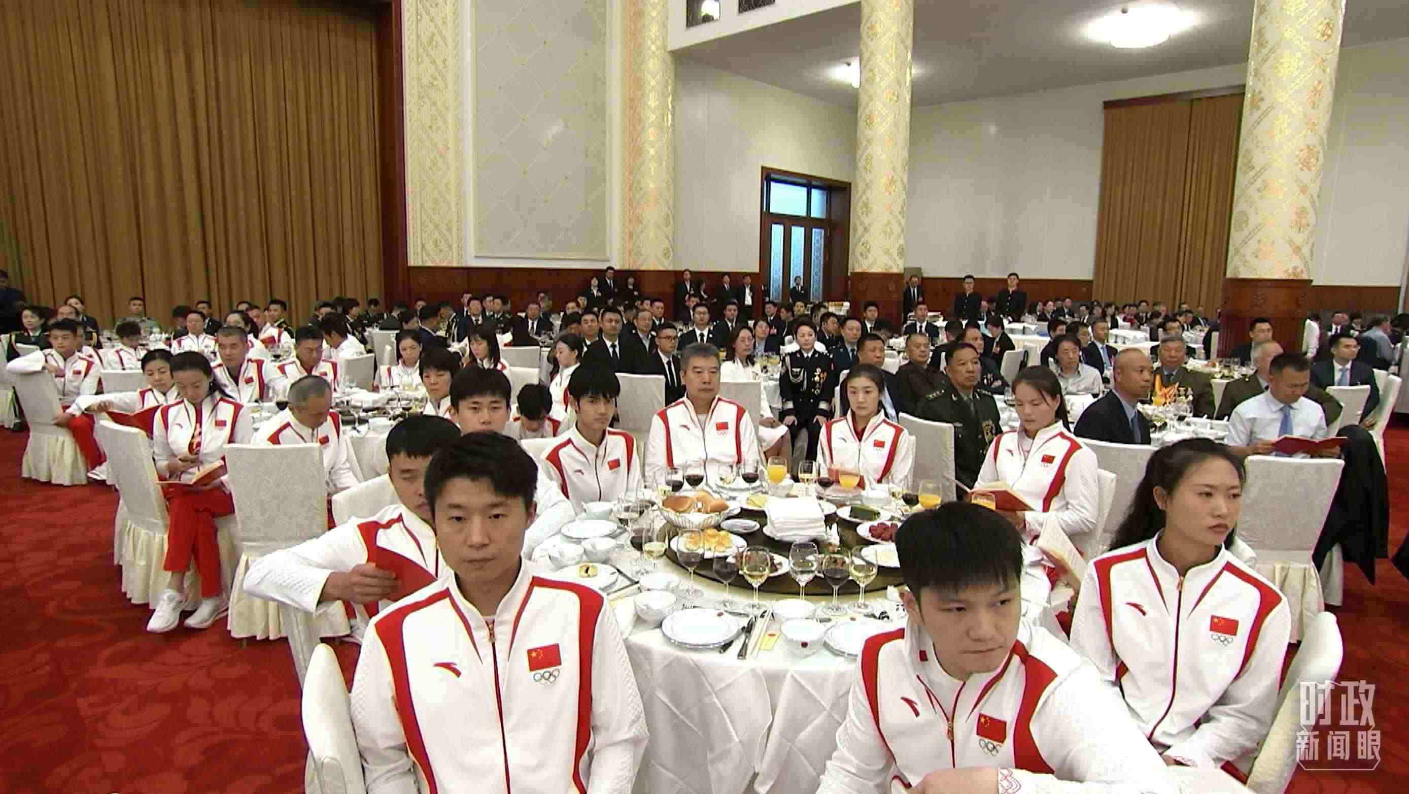 今年,“共和國勛章”“友誼勛章”“七一勛章”“八一勛章”和國家榮譽稱號獲得者代表,巴黎奧運會、殘奧會中國體育代表團代表等應(yīng)邀參加了招待會。
