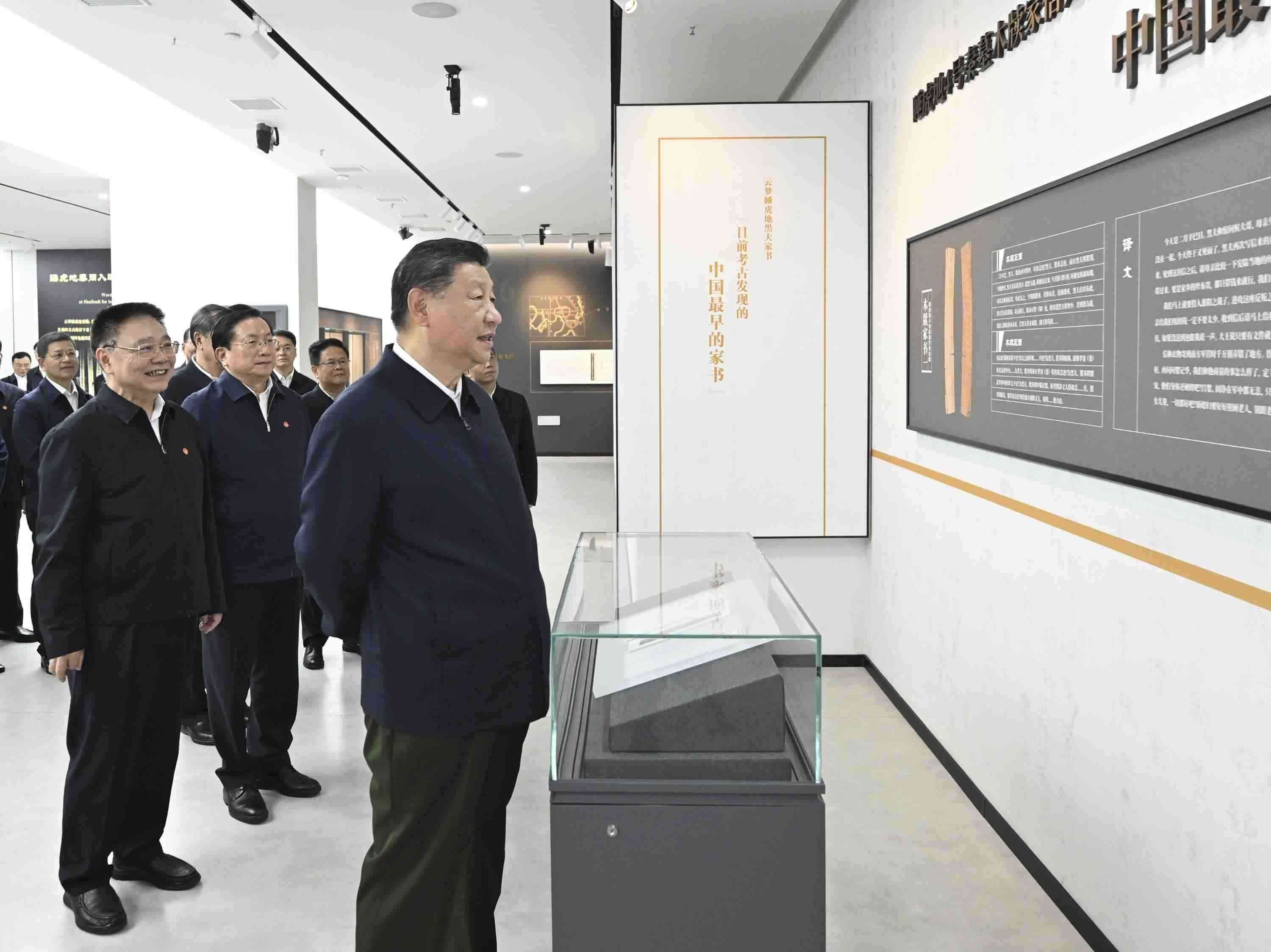 4日下午,習(xí)近平總書記來到湖北孝感市云夢縣博物館,參觀云夢出土秦漢簡牘展,詳細(xì)了解簡牘內(nèi)容、歷史文化價值和保護(hù)研究情況。習(xí)近平說,古代簡牘非常珍貴,是我們國家信史的重要實物佐證,要善加保護(hù),做好研究。要不斷通過考古發(fā)掘,為國家歷史提供更多不容置疑的佐證材料。(人民日報客戶端杜尚澤)