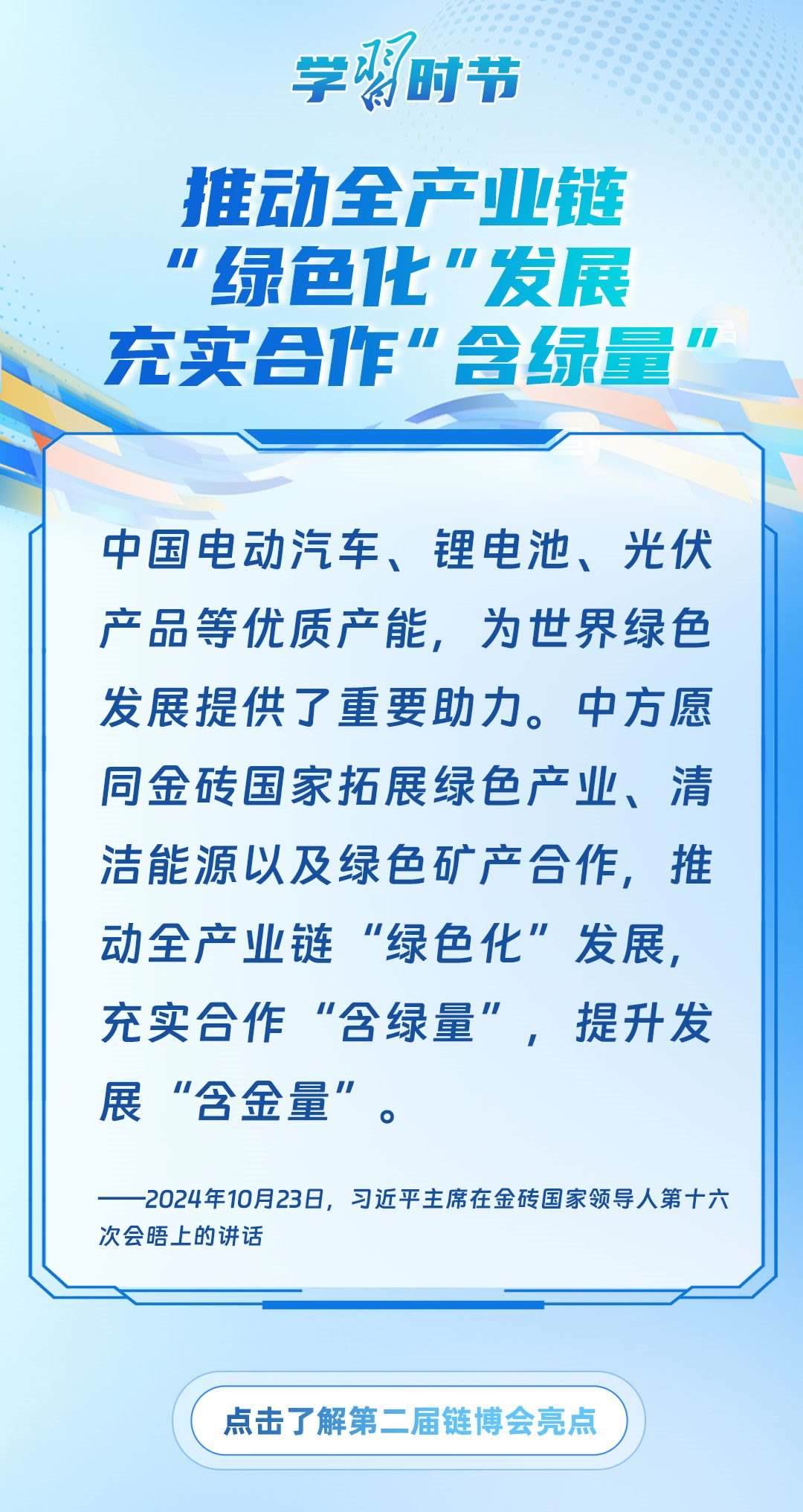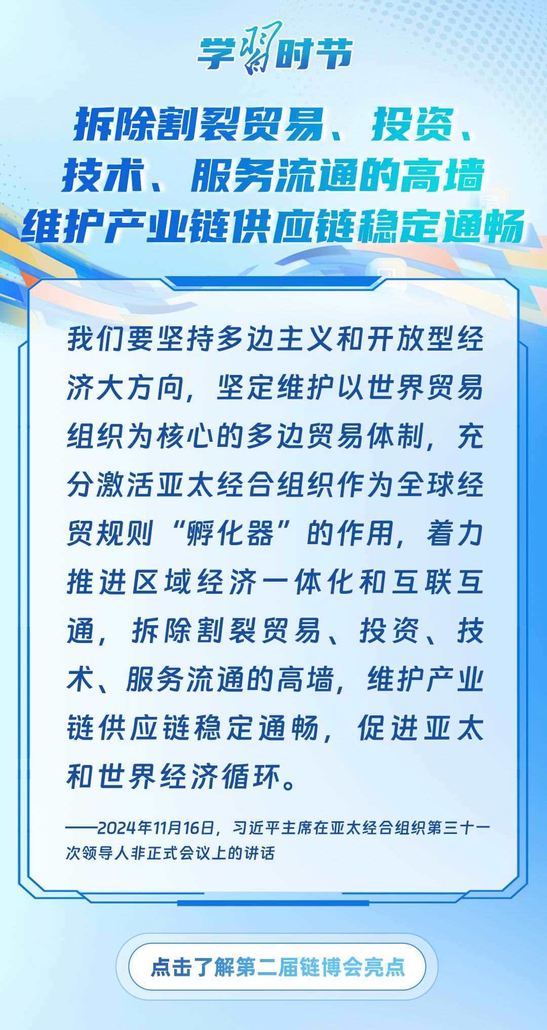 習(xí)近平主席心系產(chǎn)業(yè)鏈供應(yīng)鏈安全穩(wěn)定,多次強(qiáng)調(diào)中國(guó)將以實(shí)際行動(dòng)維護(hù)全球產(chǎn)業(yè)鏈供應(yīng)鏈安全穩(wěn)定,為世界各國(guó)共同構(gòu)筑安全穩(wěn)定、暢通高效、開放包容、互利共贏的全球產(chǎn)業(yè)鏈供應(yīng)鏈體系提供中國(guó)方案。習(xí)近平主席曾在多個(gè)重要場(chǎng)合對(duì)此作出一系列深刻闡述,讓我們一起學(xué)習(xí)。