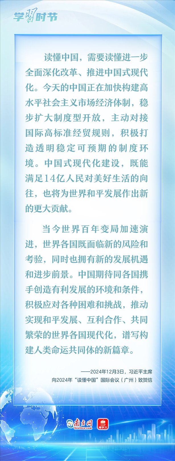 12月3日,國家主席習(xí)近平向2024年“讀懂中國”國際會議(廣州)致賀信。