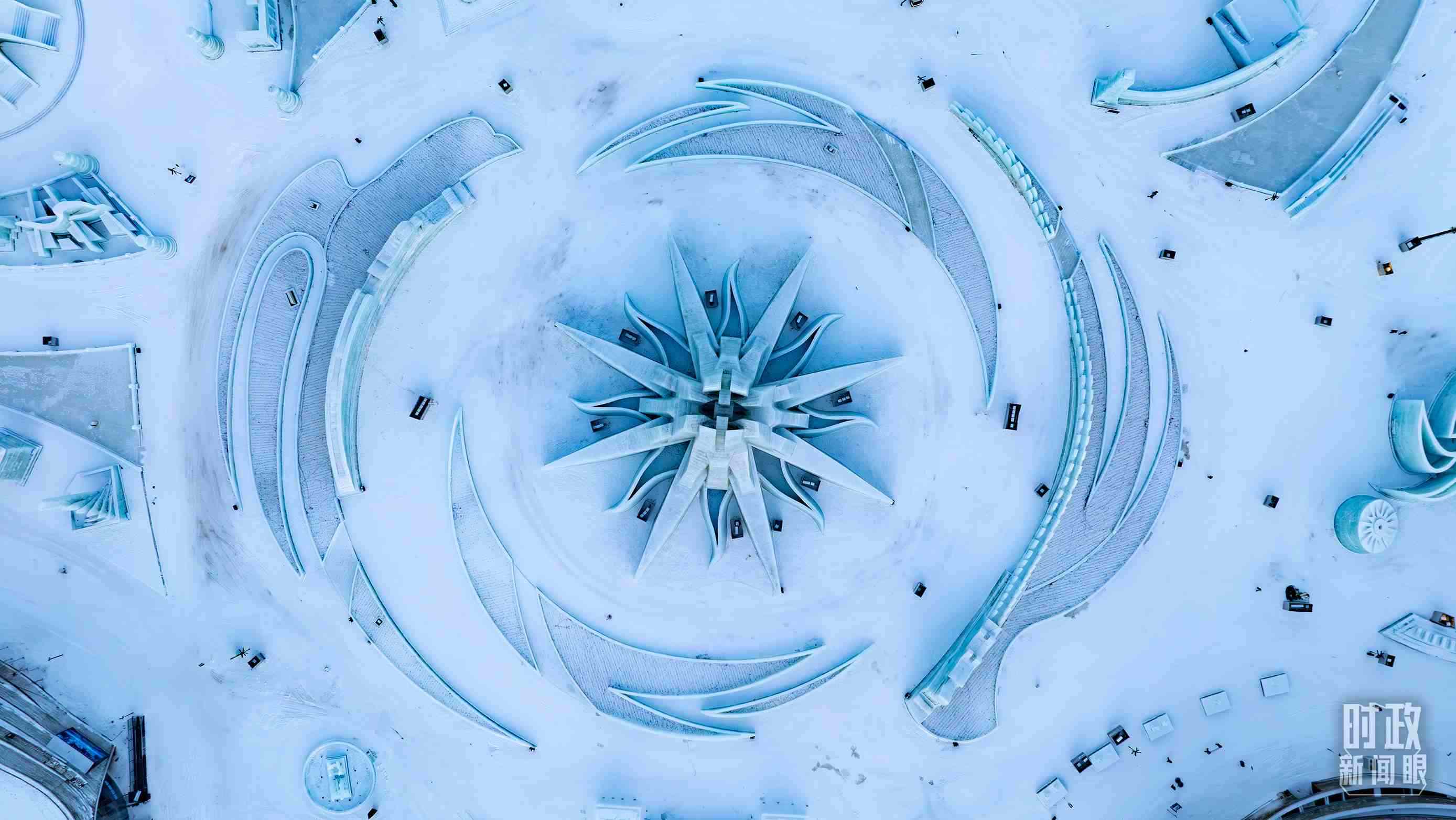 △哈爾濱冰雪大世界“雪花”圖案。(總臺記者邵沖拍攝)