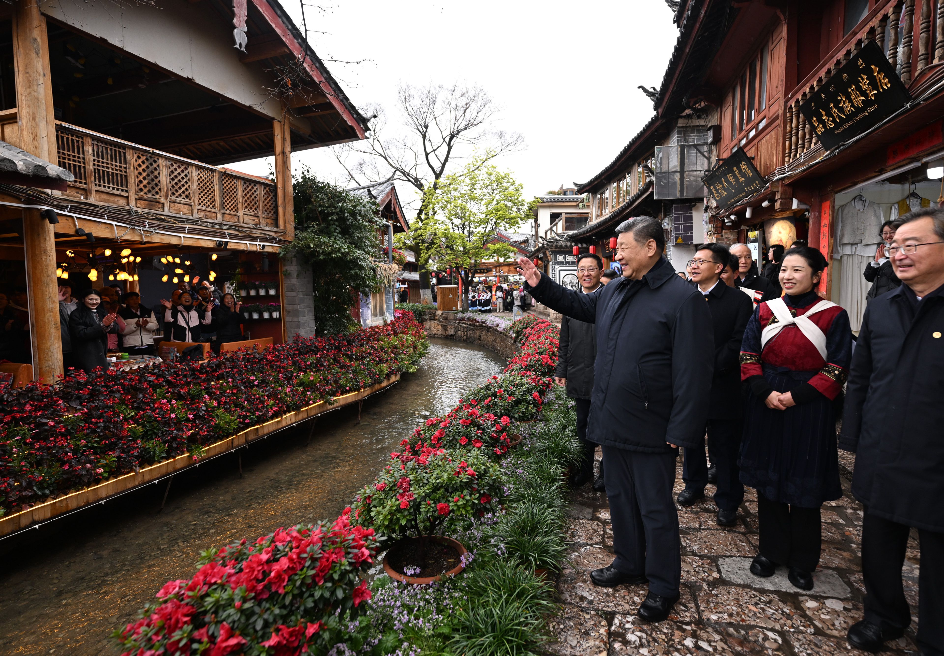 習(xí)近平總書記19日下午來到云南麗江古城,沿著石板路邊走邊看。當(dāng)?shù)鼐用窈脱赝居慰褪譄崆榈叵蚩倳泦柡?,?xí)近平不時(shí)停下腳步同大家親切交流。習(xí)近平說,這里的文化、風(fēng)光、民俗都非常吸引人,文旅融合促進(jìn)了經(jīng)濟(jì)發(fā)展。文旅產(chǎn)業(yè)要走一條持續(xù)、健康的發(fā)展之路。希望你們的生活幸福安康,就像納西族的大姓“和”姓一樣,和和美美。