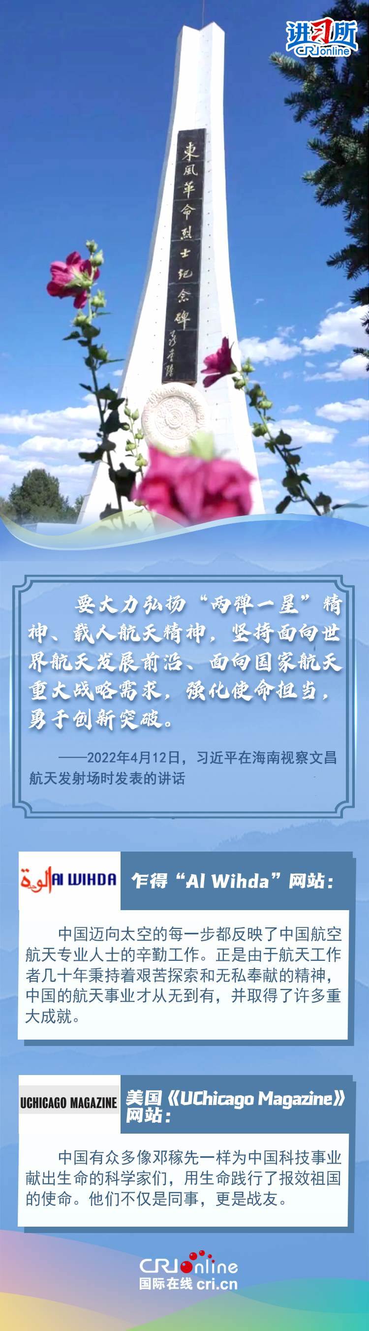 新時(shí)代以來,從設(shè)立烈士紀(jì)念日到出臺(tái)英雄烈士保護(hù)法,再到加強(qiáng)烈士紀(jì)念設(shè)施保護(hù),中國崇尚英雄、學(xué)習(xí)英雄的社會(huì)風(fēng)尚贏得國際社會(huì)贊譽(yù)。在國際人士眼中,中國多年來飛躍式的進(jìn)步和發(fā)展,離不開人們對先輩意志的繼承與實(shí)踐。