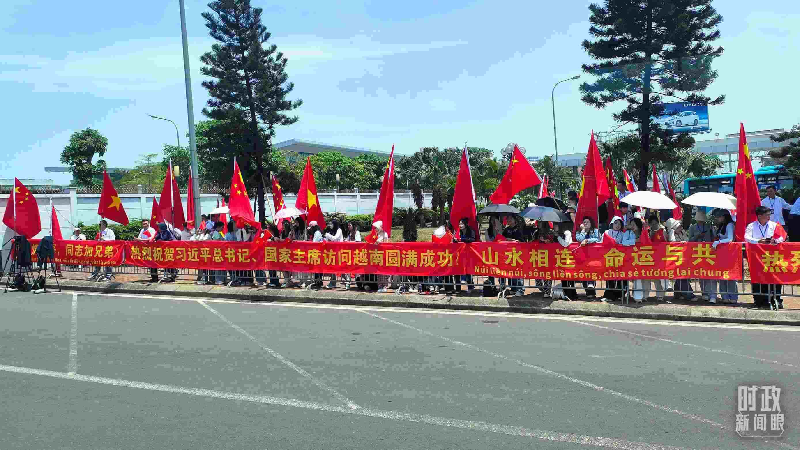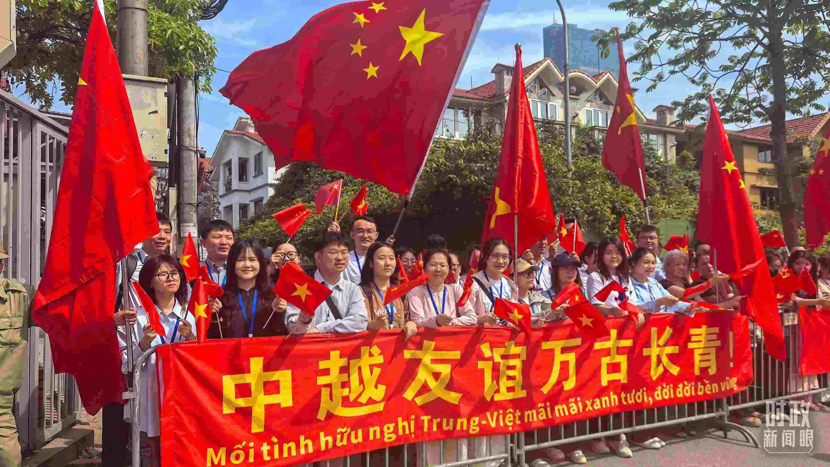 △ 民眾沿途揮舞中越國旗。(總臺(tái)央廣記者劉會(huì)民拍攝)