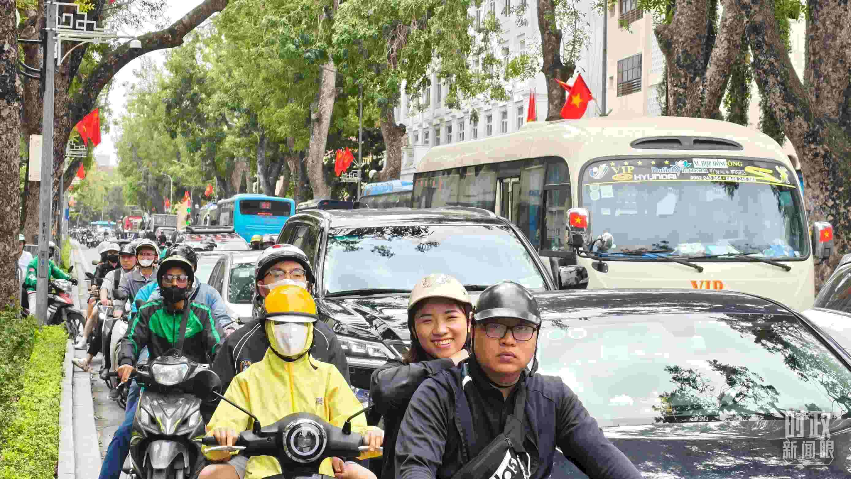 △ 河內(nèi)街道上民眾們手執(zhí)兩國國旗。(總臺(tái)國廣記者吳倩拍攝)