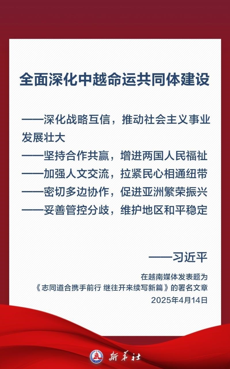 中共中央總書記、國家主席習(xí)近平4月14日至15日對(duì)越南進(jìn)行國事訪問。此訪適逢中越建交75周年,對(duì)兩國關(guān)系具有承前啟后、繼往開來的重大意義。