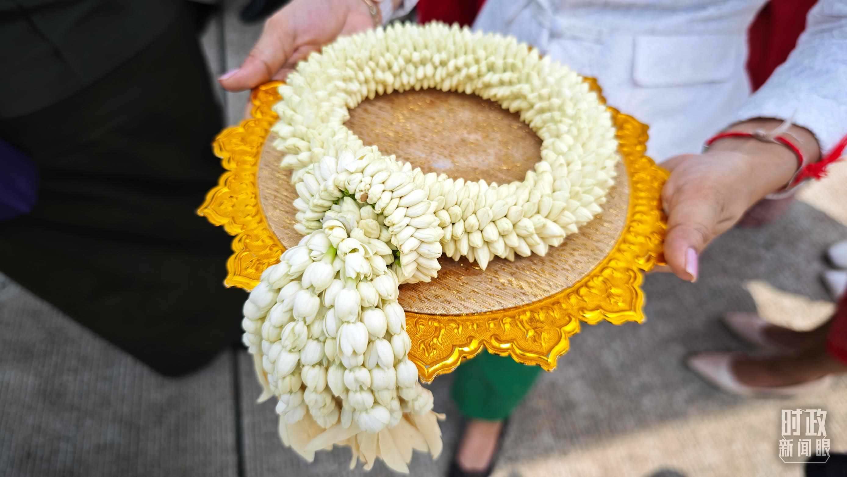 △柬埔寨王室珍娜公主向習(xí)主席獻(xiàn)上的茉莉花手環(huán)。(總臺央廣記者潘毅拍攝)