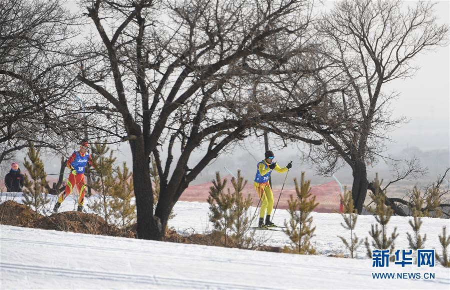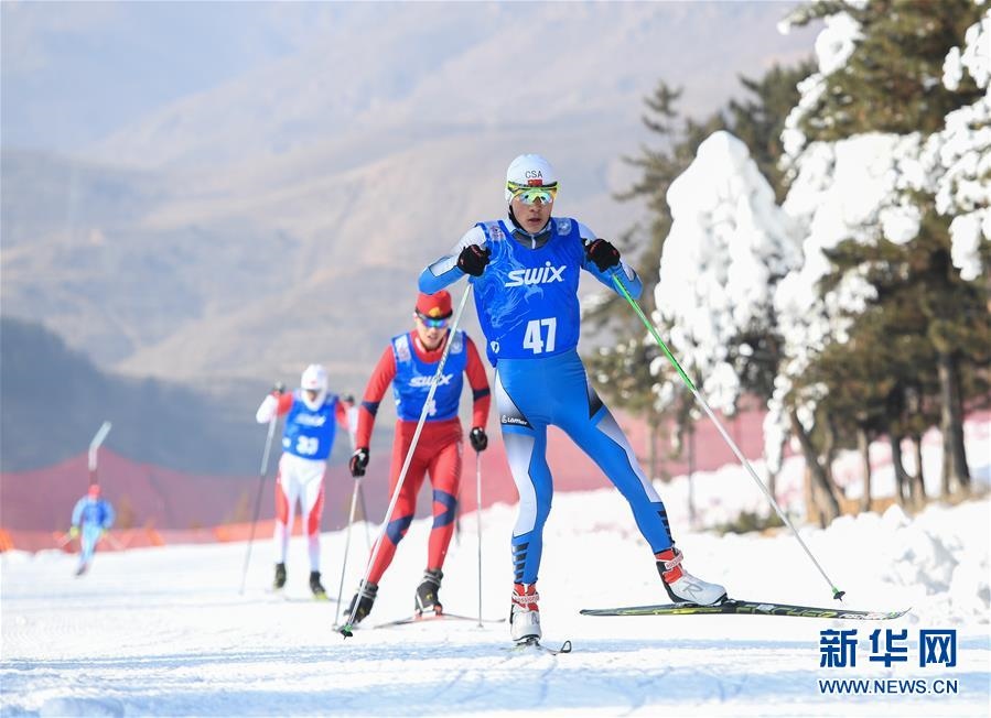 1月11日至1月15日,2018-2019年度全國青少年越野滑雪錦標(biāo)賽在內(nèi)蒙古烏蘭察布市涼城縣岱?;﹫雠e行。這是選手在青年組男子30公里集體出發(fā)(自由技術(shù))比賽中(1月12日攝)。新華社記者彭源攝