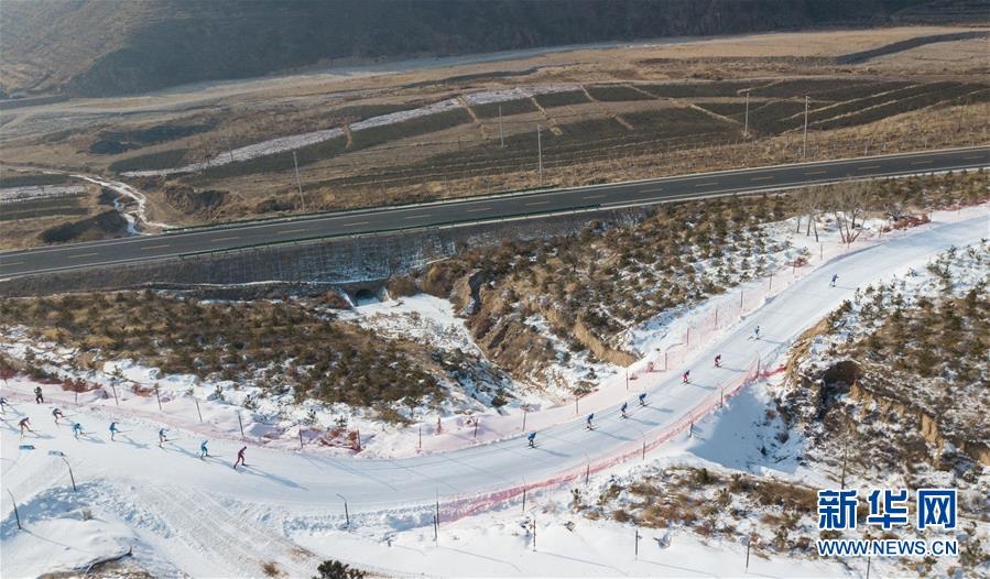 1月12日,參賽選手在青年組男子30公里集體出發(fā)(自由技術(shù))比賽中。1月11日至1月15日,2018-2019年度全國青少年越野滑雪錦標(biāo)賽在內(nèi)蒙古烏蘭察布市涼城縣岱?;﹫雠e行。新華社記者彭源攝