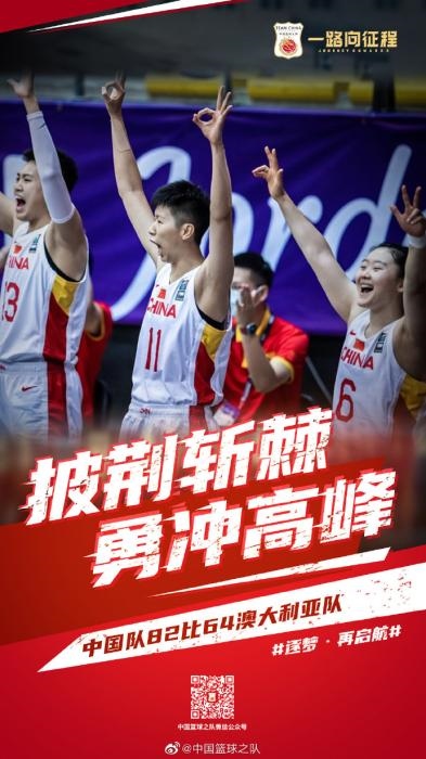 中新網(wǎng)客戶端北京9月30日電 北京時(shí)間29日晚,2021年女籃亞洲杯在約旦首都安曼結(jié)束了小組賽階段的爭奪,中國女籃在小組賽末輪比賽中以82:64擊敗勁敵澳大利亞隊(duì),晉級四強(qiáng)。