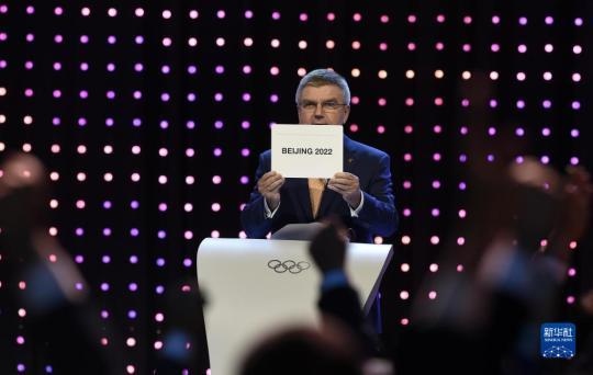 2015年7月31日,國(guó)際奧委會(huì)主席巴赫在國(guó)際奧委會(huì)第128次全會(huì)上宣布北京攜手張家口獲得2022年冬奧會(huì)舉辦權(quán)。新華社記者 公磊 攝