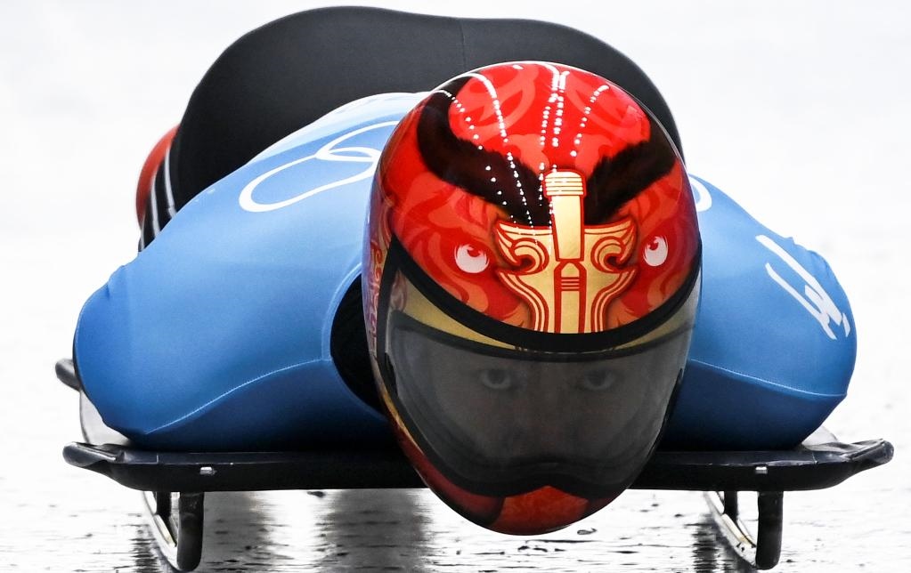2月10日,中國選手殷正在北京冬奧會(huì)男子鋼架雪車項(xiàng)目比賽中。新華社記者賀長山攝