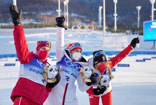 沖過(guò)速度滑冰女子3000米終點(diǎn)線時(shí)
