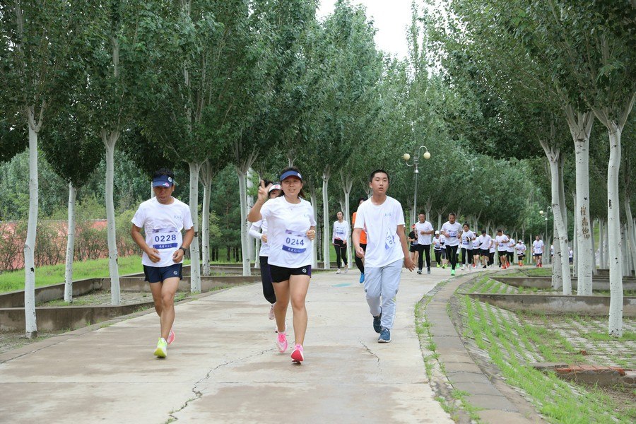 北疆新聞網(wǎng)、北疆新聞APP、北疆云消息(記者 張楊)7月24日清晨,經(jīng)過一夜的降雨,內(nèi)蒙古自治區(qū)通遼市的“城中園林”、總面積15000畝的森林公園涼爽宜人,空氣分外清新滋潤,一面面蔚藍(lán)的旗幟在蔥郁的林木間飄揚(yáng),節(jié)奏歡快的動感音樂中,來自通遼市和科爾沁區(qū)各大跑團(tuán)的跑者們,在健身教練的帶領(lǐng)下,做著跑前的熱身運(yùn)動。8時(shí)整,由通遼市科爾沁區(qū)教育體育局、洋河酒廠股份有限公司聯(lián)合主辦,以“我愛天之藍(lán)·青春內(nèi)蒙古·健康草原行”為主題的城市公益跑通遼站正式鳴笛開賽,1000多名跑者在風(fēng)景秀麗的環(huán)公園林蔭賽道上開啟了男女8公里、3公里共4個(gè)組別的城市公益跑。