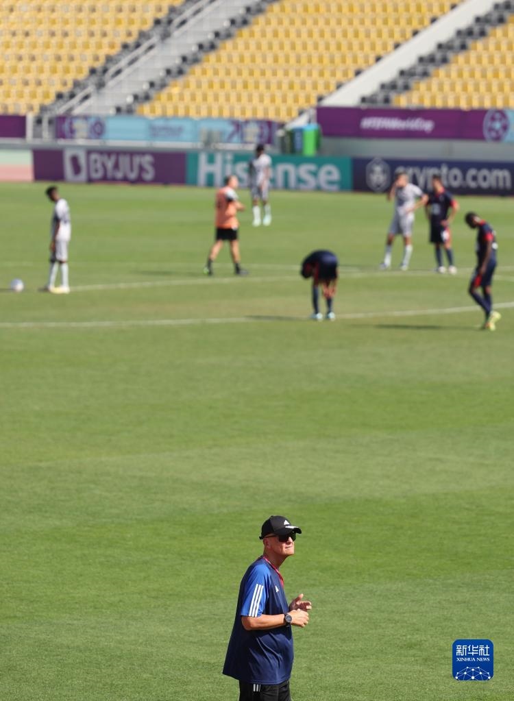 11月18日,國(guó)際足聯(lián)裁判委員會(huì)主席皮耶路易吉·科利納(下)觀看訓(xùn)練。新華社記者 賈浩成 攝