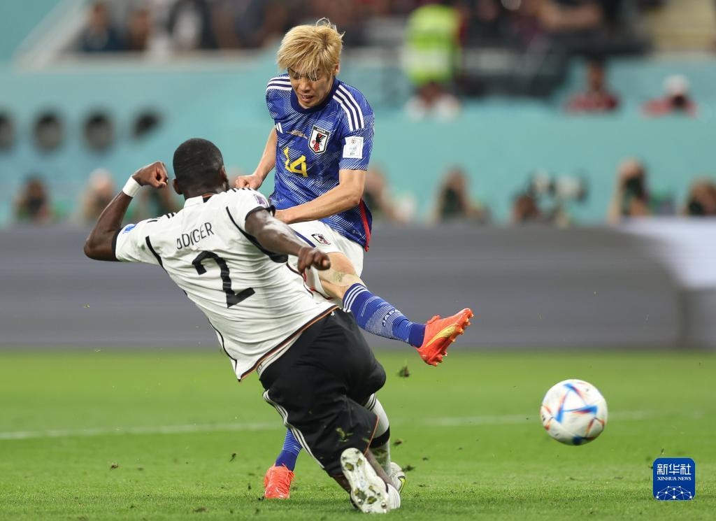 當(dāng)日,在卡塔爾多哈哈里發(fā)國(guó)際體育場(chǎng)進(jìn)行的2022卡塔爾世界杯足球賽E組比賽中,日本隊(duì)以2比1戰(zhàn)勝德國(guó)隊(duì)。