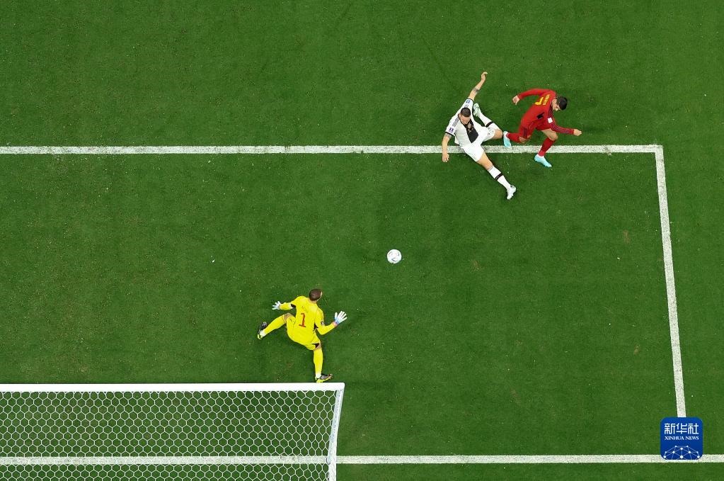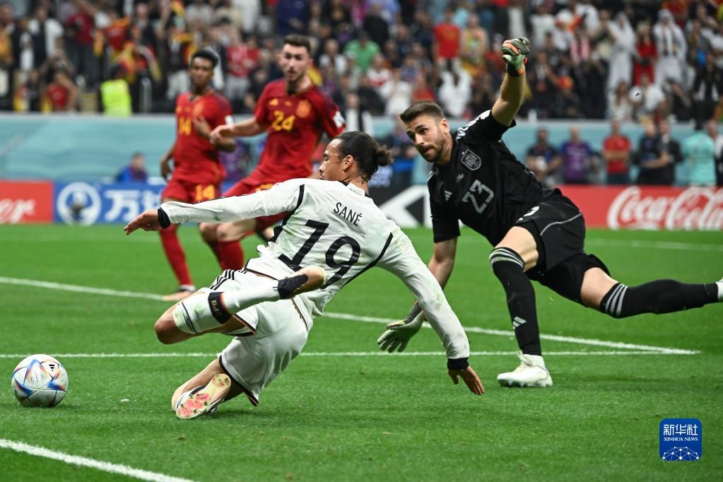 當(dāng)日,在卡塔爾豪爾海灣球場進(jìn)行的2022卡塔爾世界杯足球賽E組比賽中,西班牙隊以1比1戰(zhàn)平德國隊。