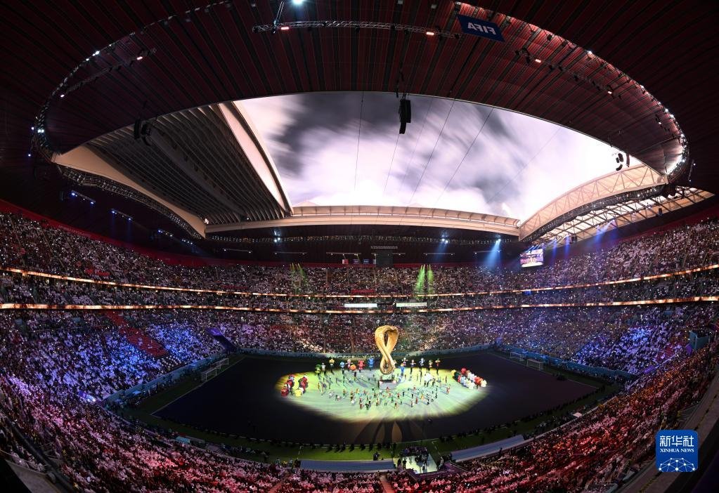 這是2022年11月20日在海灣球場(chǎng)拍攝的卡塔爾世界杯開幕式現(xiàn)場(chǎng)。新華社記者 肖藝九 攝