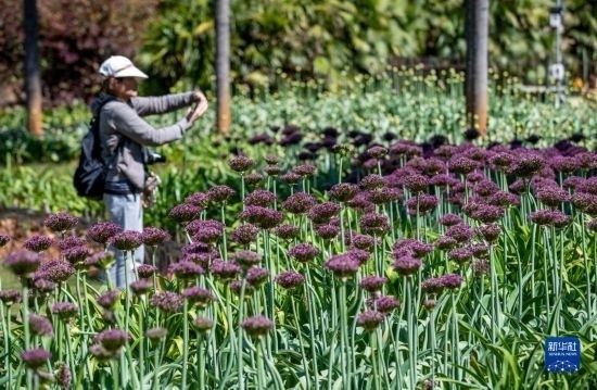 近日,昆明植物園中烏全球蔥園(昆明中心)內(nèi)的近十個品種、6000余株觀賞蔥屬植物逐漸迎來盛花期,吸引游客前來觀光。據(jù)了解,蔥屬植物具有重要的經(jīng)濟利用價值,許多種類被人類作為食用、藥用和觀賞植物進行了長期的栽培利用。