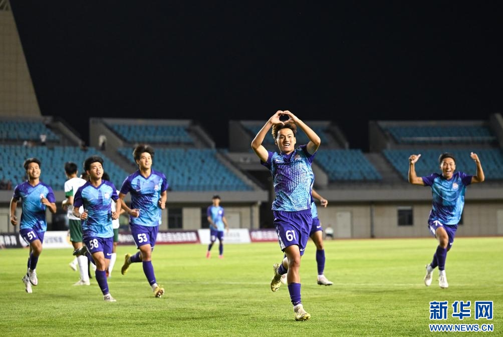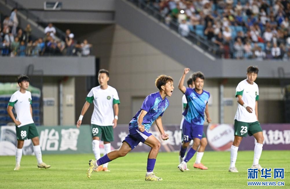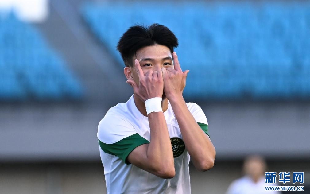 ??6月15日,浙江俱樂部U21隊(duì)球員王鈺棟在比賽中慶祝進(jìn)球。