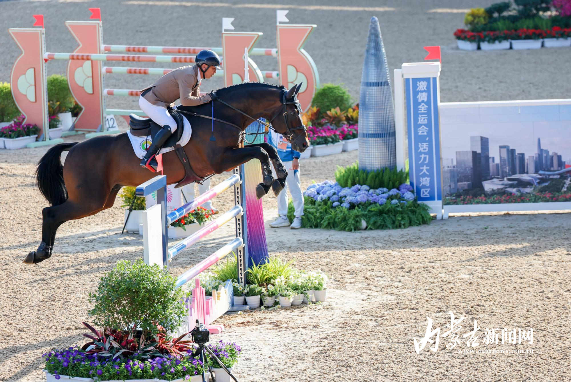 11月17日,第十五屆全國(guó)運(yùn)動(dòng)會(huì)馬術(shù)項(xiàng)目場(chǎng)地障礙團(tuán)體賽在深圳市光明國(guó)際馬術(shù)中心進(jìn)行,由達(dá)日瑪、劉同晏、張睿、韓豐組成的內(nèi)蒙古隊(duì)?wèi){借兩輪穩(wěn)定發(fā)揮,以總罰分31分的成績(jī)斬獲銅牌。