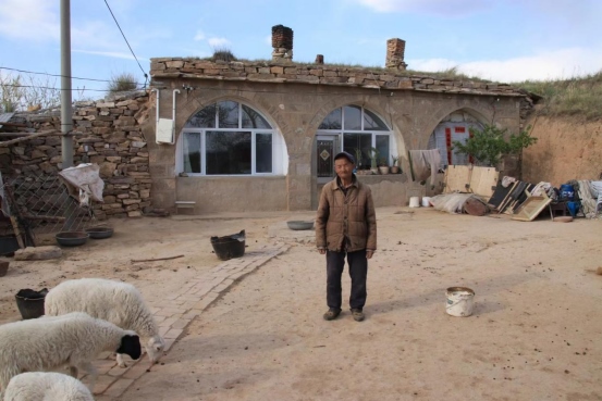 2022年5月15日,呼和浩特市長城科普學(xué)會會員來到清水河縣城關(guān)鎮(zhèn)銀滾山長城公園北面的邊墻壕村考察明大邊,在村口聽見狗吠,順著聲音走到邊墻人家門前,一只雞站下來一直看著你,等你走近的時(shí)候才扭著身子慢慢跑開;你也會聞到羊糞的味道,它們從大門縫里鉆出來,稀罕地與我們打著招呼。男主人在羊圈里清理羊糞,他抬起頭和我們說話,老人耳背,我們連說帶比劃才明白:老漢叫呂占全, 今年90歲,老伴叫郝二毛旦 ,81歲,家里只剩老兩口,兒女們都在市里工作。他們二老是邊墻壕村的守護(hù)者,世世代代一直與邊墻為伴。